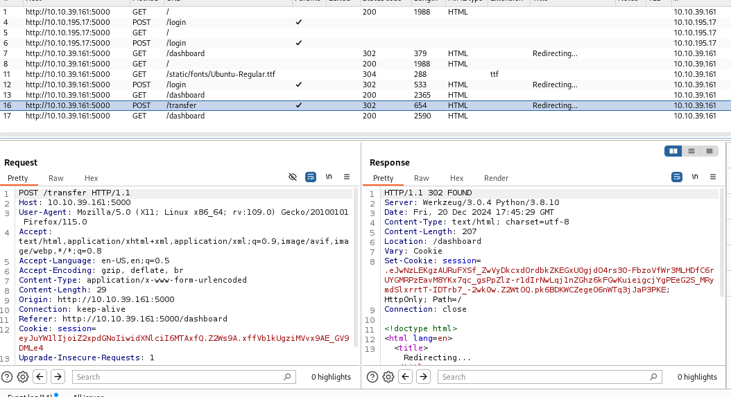 burpsuitewe should see transfer POST request